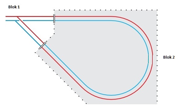 Klopt helemaal. En bij de overgang linksonder, waar blauw en rood kruisen, moet je in Koploper bij onderhouden blokken "ompolen" aanvinken.