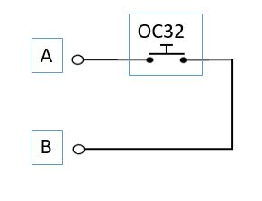 Hoe sluit ik de 2 draden aan op de OC32, welke bank (source of sink) en welke instructie programmeer ik in de OC32.