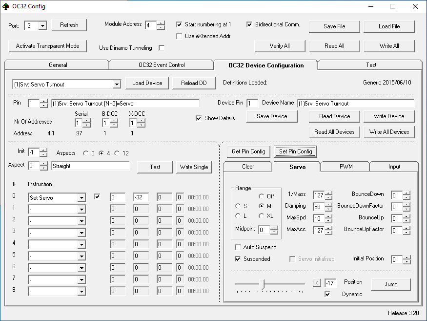 Na lang twijfelen ga ik toch een vraag stellen. Ik heb het hele dynamo draaien en treinen rijden, seinen stuur ik aan met OC32 en dat gaat goed. Ik heb die seinen ingesteld met OC32Config (402) en Release is 3.20.