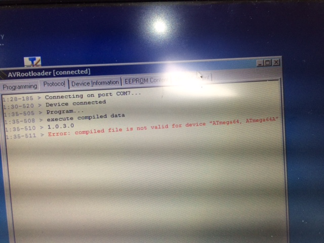 The old firmware has been deleted, but the new firmware does not go onto the UCCI. I get an error message: ERROR: Compiled file is not valid for device ATMega 64 AT Mega 64a