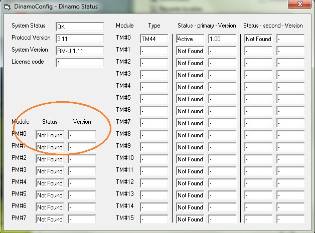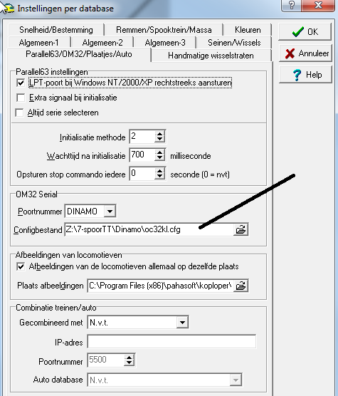 In dinamo configuratie kan ik de poort selecteren, maar in OC32CONFIG niet.