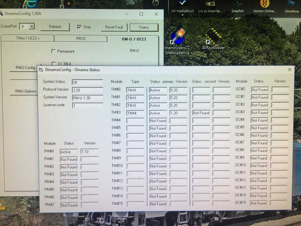 De adressen staan juist , master/slave goed ingesteld , eerste afsluitweerstand geplaatst op de eerste TM-H in de Dinamo-kast ; de andere op het laatste printje en dat is een OC32 NG, en daartussen de TM44.