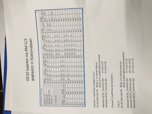 Als ik de PC opstart worden alle TM44 kaarten in channel 0 niet aktief. Met behulp van Dinamo config zie ik wel de TM44 kaarten en de OC32 kaarten in channel 1. Wissels schakelen gewoon en trein kan ik laten rijden in blokken van channel 1.