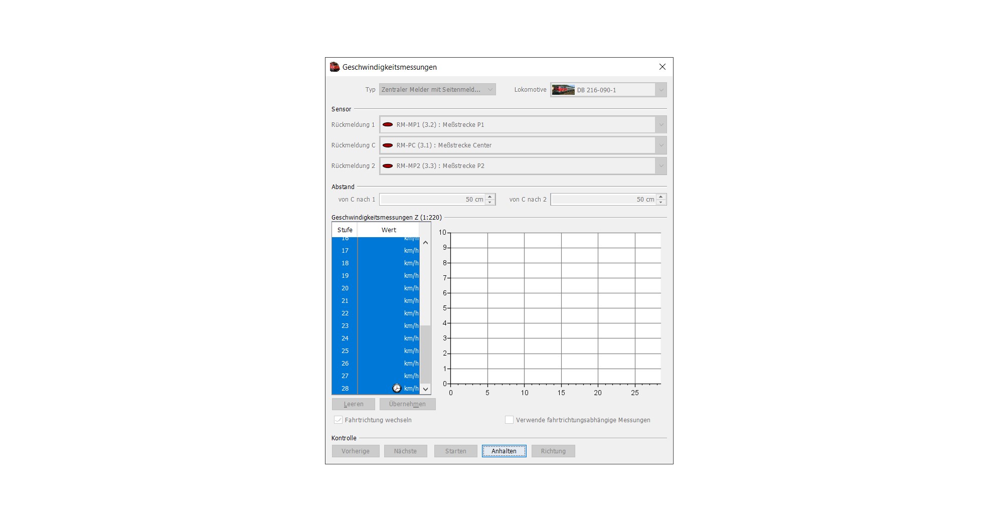 Die Messtrecke funktioniert mit dem Config Tool. Damit fährt die Lok über alle 3 Abschnitte.
