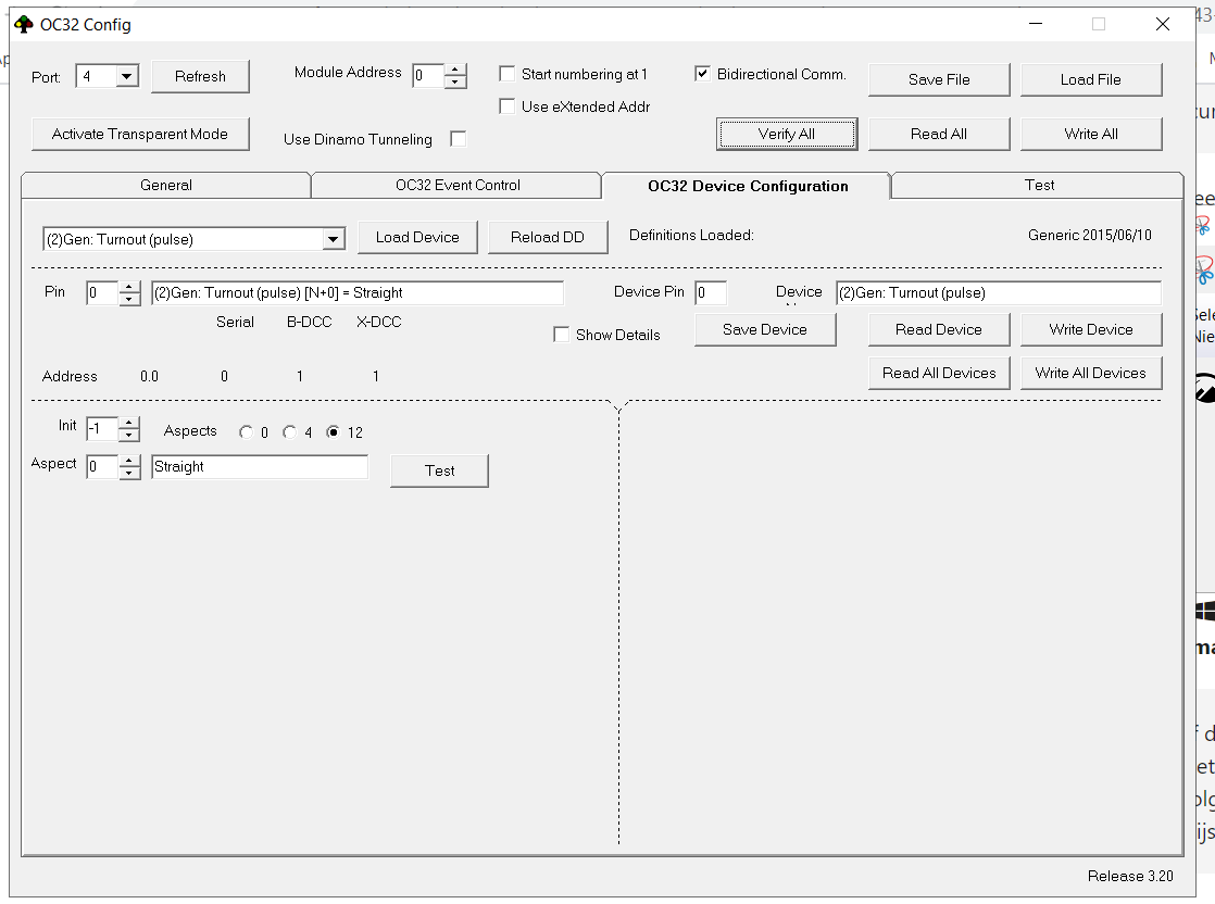 Beste allemaal, ruim 4 jaar geleden ben ik met Dinamo, Kato N-spoor en Koploper begonnen. De Kato wissels heb ik destijds met een OC32 en sinc/sourcedriver naar tevredenheid aan de praat gekregen. In mijn nieuwe project gebruik ik FLM N-spoor wissels en OC32/NG. Met behulp van de handleiding kom ik er niet uit, heeft iemand een tip voor een tutorial m.b.t. het configureren van OC32/NG voor mijn wissels of een screenshot van de OC32config? Ik heb al 4x ADM/SI en passende voeding aangeschaft. Bij voor baat dank!