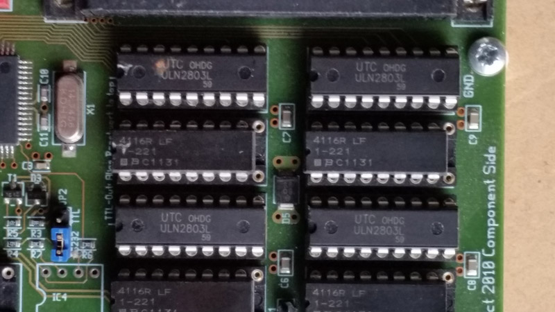 2. Ik heb de 4 ULN2803L in de Sinkbanken geplaatst en de 4116R in de kast gelegd.