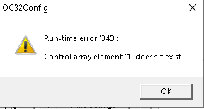 Een runtime error betekent in het algemeen dat OC32Config niet correct is geïnstalleerd.