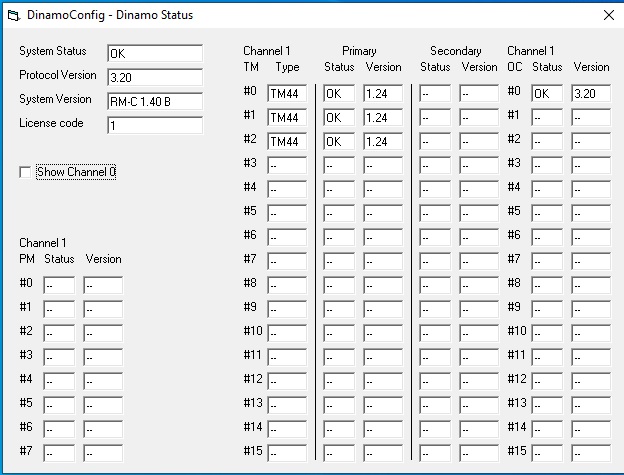 Zogezegd gedaan, mijn huidige versie was 1.21 en heb nu een 2x update gedaan naar versie 1.24. De update verliep vlekkeloos, echter toen ik via DinamoConfig (versie 1.41) ging kijken of alle modules weer in beeld waren viel mij iets op: mijn master/slave instelling was correct echter op TM 0.0 en TM 0.1 geen clock....terwijl ik niets aan de dip-switchjes heb veranderd. In eerste instantie contact gezocht met Martin maar die was ook verrast. Om uit te sluiten dat er toch iets mis was gegaan met updaten mijn beide TM44 weer terug gezet naar versie 1.21 en tada, master/slave correct EN op beide TM44 clock ok. Nog een proef op de som, beide ge-update naar versie 1.23 en ook bij deze firmware versie gaat het goed.