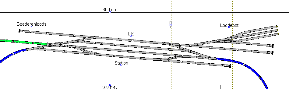 Posted by Leon van Perlo on 2009-12-21 21:20 Hallo Dirk, De rode streepjes zijn de blokscheidingen. De kopsporen kun je voorzien van een aparte blok-uitgang of met een relais koppelen aan het blok waar de wissels naar toe leiden. De engelsman links kun je voeden met een aparte blok-uitgang of met een dubbel-om relais uit het groene of (linker)blauwe blok, afhankelijk van de ingestelde rijweg. Mvg, Leon layout_v2_4_lvp.png (8.36 Kb)