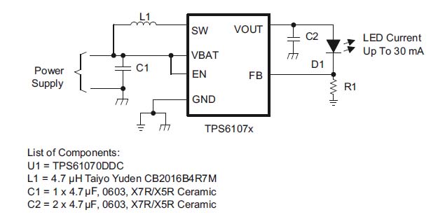 on page 22 of the v1.2 documentation you can see that you need a coil to create the needed higher voltage for the white leds. This output is modulated. The parallel restistor with this print version is on the print itself.
