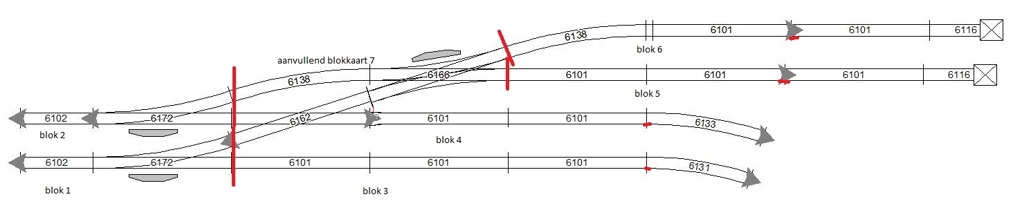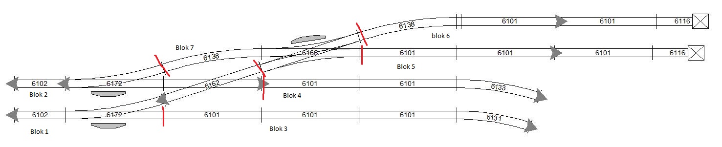 Gezien we genoeg aansluitingen hebben op de TM-44's sluit ik de engelse kruising gewoon via een blok(7) aan betreft bocht 6138 en de kruising.