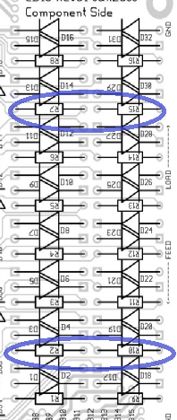 Op je CD16's zitten (o.a.) 16 paren 1N400x diodes met daarnaast steeds een 1K weerstandje. Zit op elk van die setjes diodes+weerstand nog iets anders gesoldeerd?