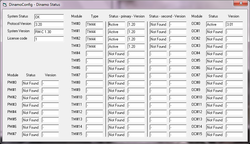 Ik heb Kato spoor N, Koploper 9.1, Dinamo P&P met 4x TM44 en 1x OC32. In DinamoConfig worden deze allemaal herkend.