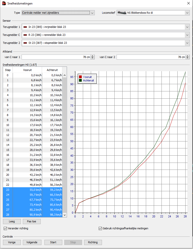 Het betreft de Fleischmann Sprinter, de Fleischmann Plan-V en de Roco 1600. Alle meer dan 30 jaar oud. Ik krijg hun maximum schaalsnelheid niet boven de 90-100 km/h. Experimenteren met verschillende waardes in de CV's 5 en 53 heeft weinig tot geen resultaat gegeven. Ook het aanpassen van de PWM van 40 naar 20 kHz geeft geen resultaat. De baanspanning staat op 16volt. Alle locs en treinstellen met een moderne motor rijden veel beter en op de juiste schaalsnelheid. Ik hoor van 2 spoorvrienden dat die hetzelfde probleem ervaren met oudere gedigitaliseerde treinen.