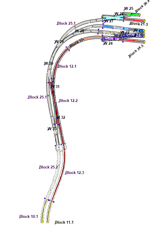 1. ist es richtig, in der unten abgebildeten Situation , wird die Weiche W25 durch den Ausgang 20.4 (B3 des TM44) des Blockes 20 ohne Relais