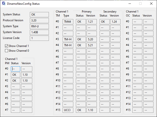 In DinamoConfig wordt de RM-U status OK gegeven, dus de PC ziet de module nog wel.