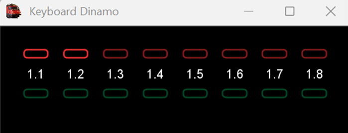 Im Dinamo-Keyboard (Anhang) erscheinen diese beiden Abschnitte leuchtend rot umrandet. Auch wenn keine Lok auf einem der Abschnitte steht.