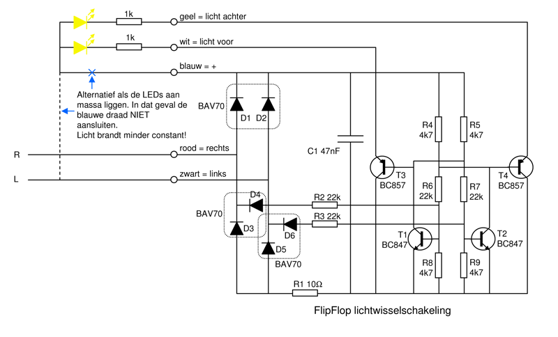 Zodra de trein gaat rijden functioneren front en sluitlichten weer normaal. Op dit forum heb ik iets gevonden over smoorspoelen en een lichtwisselschakeling (in het Yahoo-archief), maar details kan ik niet vinden. Kan iemand mij verder helpen?